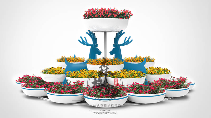 馴鹿塑藝花器和馴鹿立體花架,是馴鹿車造型打造的鐵藝動物塑藝花器,可擺放在景區、廣場、商業街等。畫面生動,效果喜人。