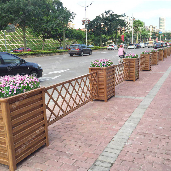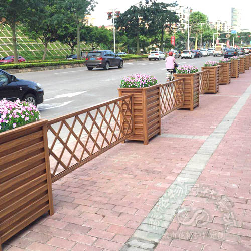 簡介:黃檀木紋鋁合金花箱隔離欄,花箱規格長80*80*50CM 隔離欄網格片長300cm*寬50cm 尺寸規格按要求定制