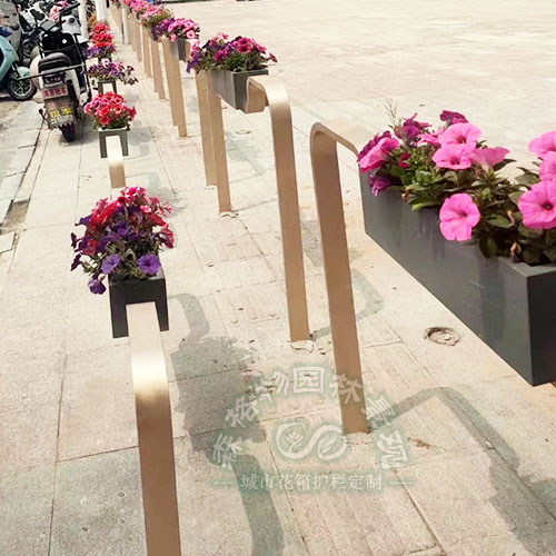 不銹鋼步行街隔離花架設計簡單,安裝方便,可以快速替換石墩,起到隔離,阻止禁行的作用。還可以起到提升道路景觀的作用