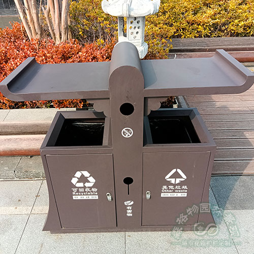 簡介:古典不銹鋼雙分類垃圾箱因其獨特的外觀設計,可以完美地融入不同場合,如公園、廣場、小區、寫字樓等各種環境。它的古典外觀符合中式傳統審美觀,也適合新中式風格的室內裝修。