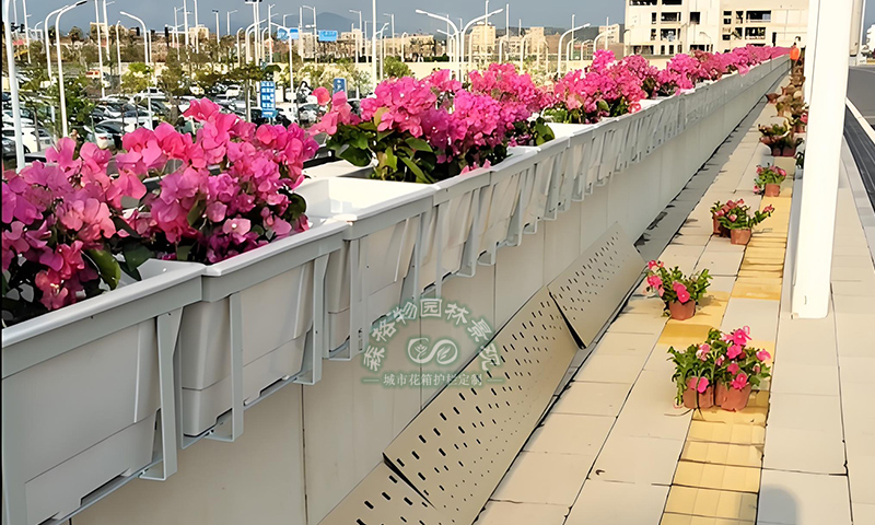 按結構形式分類:包括掛式花箱、組合式花箱、裝配式花箱等。掛式花箱通常通過掛鉤或支架固定在橋梁護欄或邊緣上,節省空間且安裝方便;組合式花箱由多個花箱單元組合而成,可以根據需要進行不同的排列和組合,形成各種造型和圖案;裝配式花箱則是采用模塊化設計,現場組裝,具有安裝快捷、便于維護等優點。
