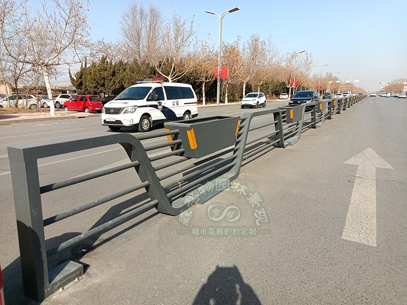 克拉瑪依花箱定制:山東德州中央隔離船型花箱護欄案例